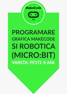 - programare grafica MakeCode si robotica (micro:bit) pentru copiii de la varsta de 8 ani;